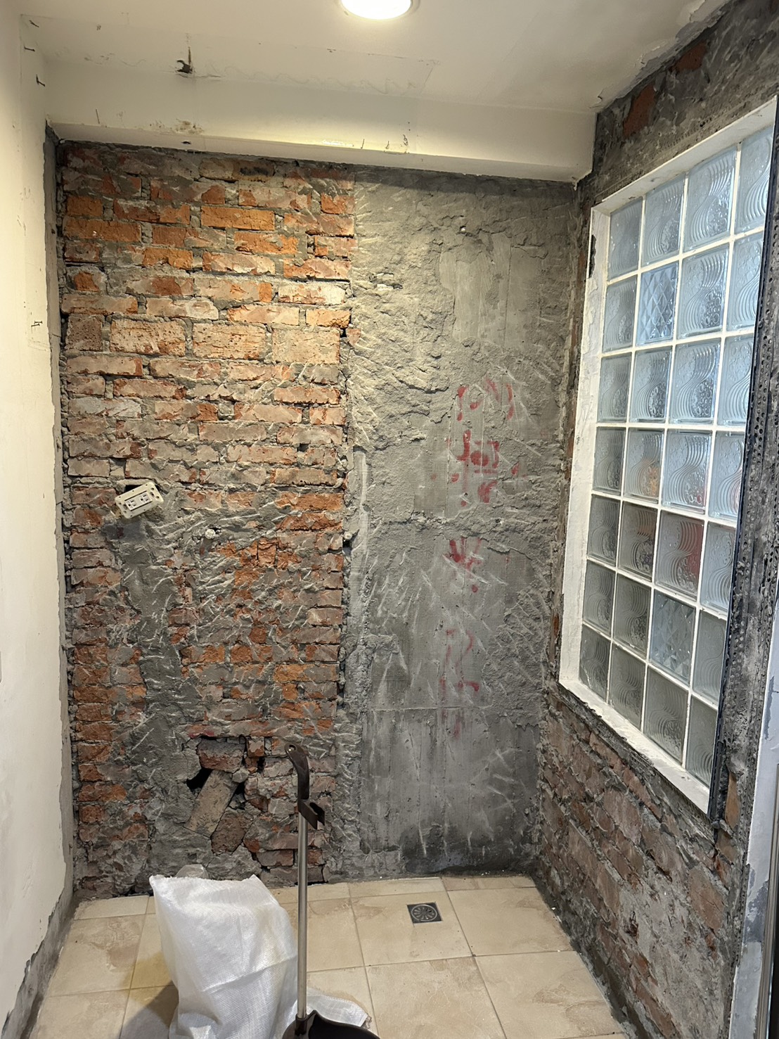 浴室整間防水貼磚.翻修工程。施工中.後